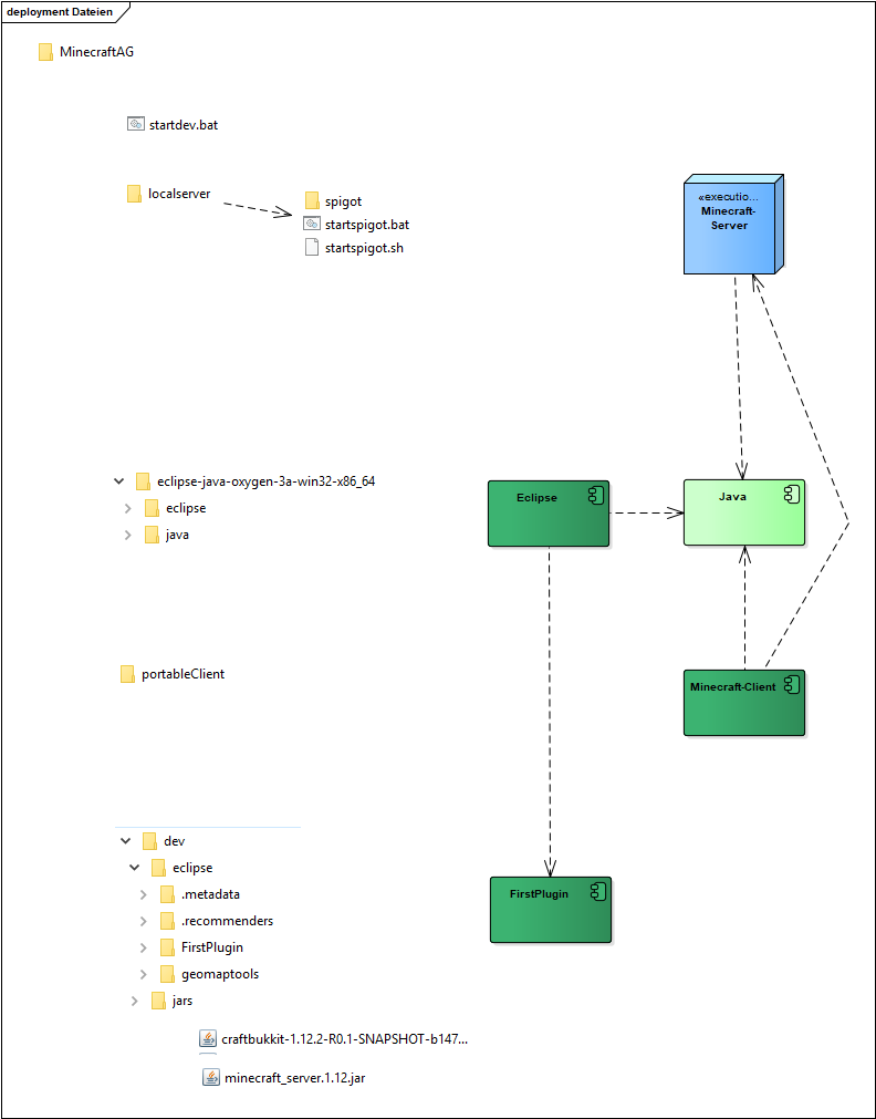 Die Datei Startdev.bat startet das Eclipse-Programm. Ausserdem sorgt Startdev.bat dafür, dass die Entwicklungsumgebung immer den Laufwerksbuchstaben M hat.